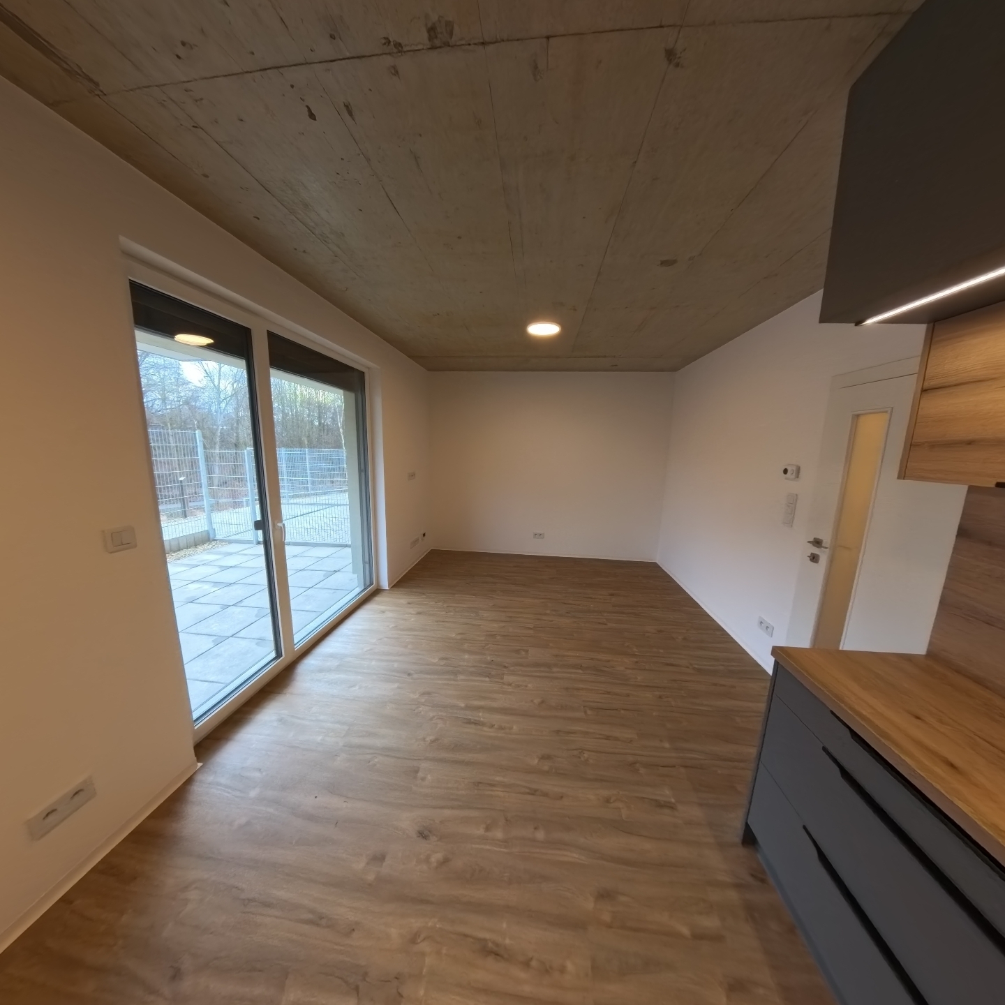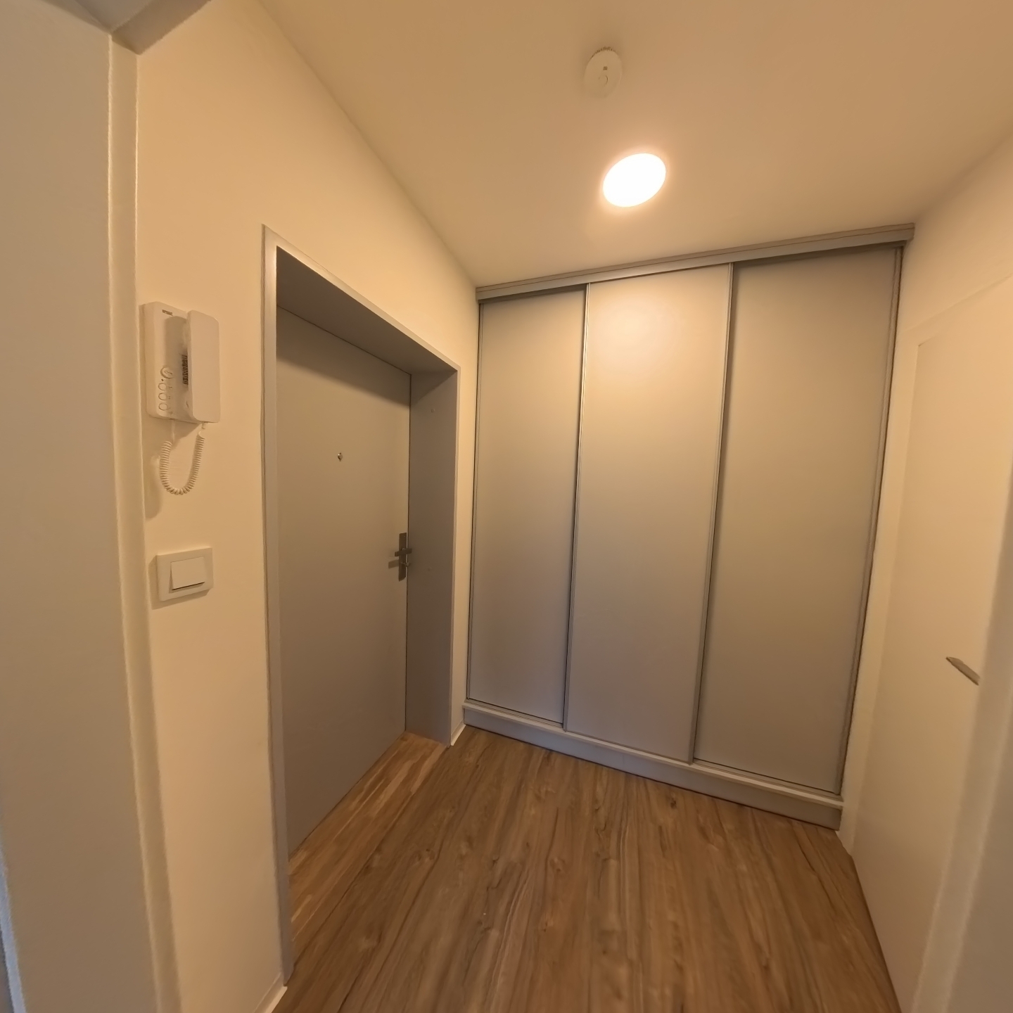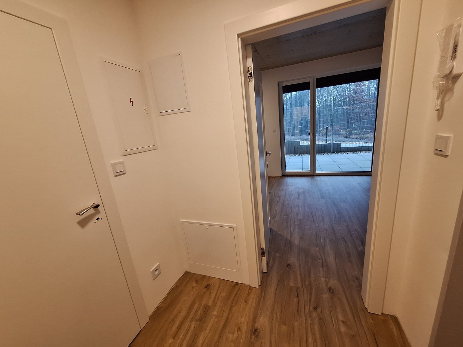 Samotný byt nabízí vstupní chodbu, kde je dále vstup do obýváku s kuchyňským koutem, nebo koupelny s WC. Z obývacího pokoje s kuchyňským koutem je vstup na dlážděnou předzahrádku 19,9 m2. Kuchyňská linka je kompletně vybavena varnou deskou, troubou, digestoří a myčkou. Na chodbě bude vestavěná šatní skříň. V koupelně je umyvadlo se skříňkou, zrcadlem, WC a sprchovým koutem. Do bytu je zavedena pozemní TV anténa, připraveny jsou rozvody pro internet. Byt je vhodný pro nekuřáky a bez domácích mazlíčků.