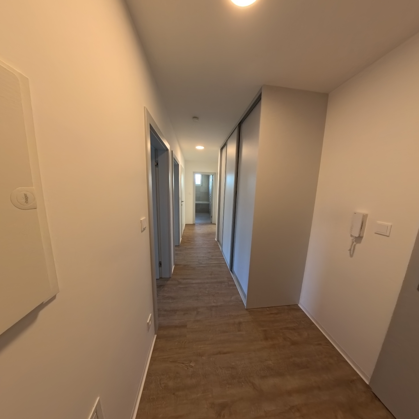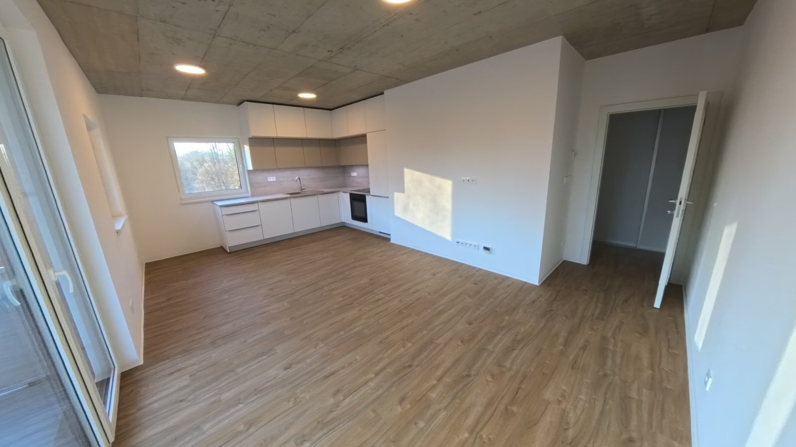 Samotný byt nabízí vstupní chodbu, kde je dále vstup do ložnice, dětského pokoje, kuchyně s obývacím pokojem, koupelny s vanou a oddělené WC. Z obývacího pokoje s kuchyňským koutem je vstup na balkón 5,3 m2. Kuchyňská linka je kompletně vybavena varnou deskou, troubou, digestoří, myčkou a vestavěnou lednicí. Součástí vybavení bytu je ve vestavěné skříni pračka a sušička. Do bytu je zavedena pozemní TV anténa, připraveny jsou rozvody pro internet. Byt je vhodný pro nekuřáky a bez domácích mazlíčků.