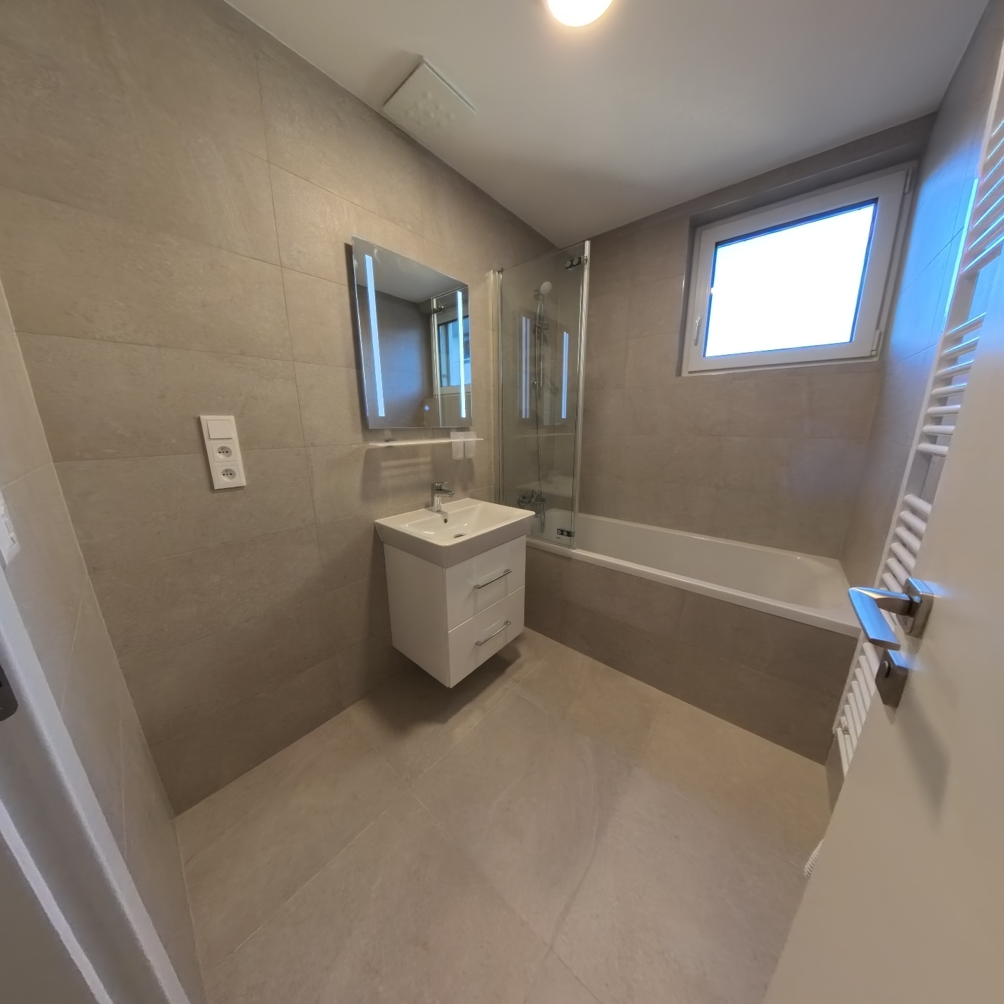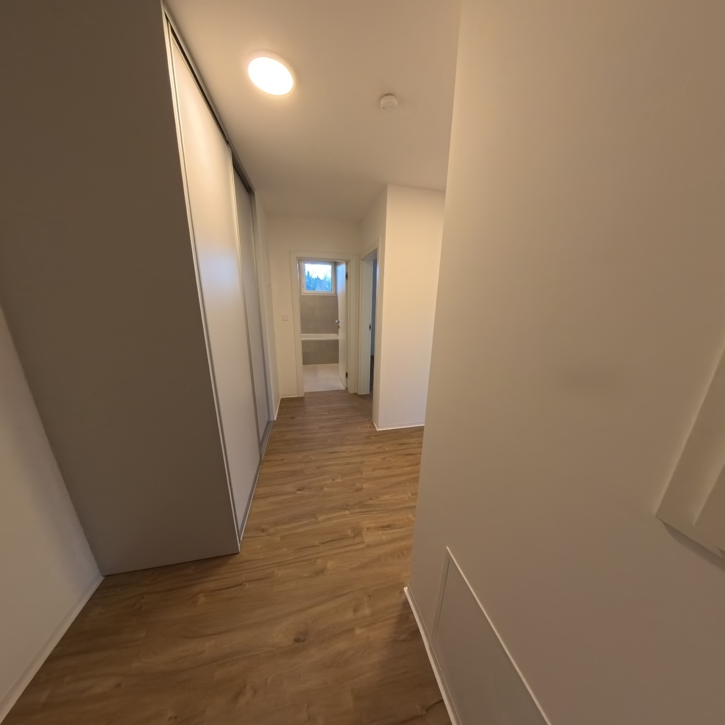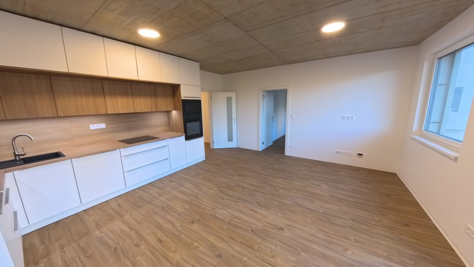 Samotný byt nabízí vstupní chodbu, kde je dále vstup do pokoje, koupelny s vanou, oddělené WC a kuchyně s obývacím pokojem. Z obývacího pokoje je dále ložnice či vstup na balkón balkón 5,3 m2. Kuchyňská linka je kompletně vybavena varnou deskou, troubou, mikrovlnkou, digestoří, myčkou a vestavěnou lednicí. V chodbě je pračka a sušička ve vestavěné skříni. Do bytu je zavedena pozemní TV anténa, připraveny jsou rozvody pro internet. Byt je vhodný pro nekuřáky a bez domácích mazlíčků.