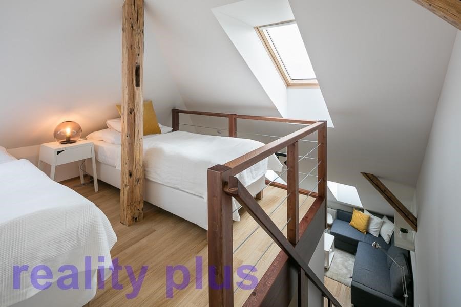 Pronájem nového mezonetového bytu 1+kk s oddělením spaním v patře v Liberci, ul. Švermova. Uvedená cena vč. energií a internetu zdarma. Pronajímáme i krátkodobě korporátní klientele BEZ PROVIZE RK. Byt o výměře 33 m2 se nachází ve 4.NP zděného činžovního domu po kompletní rekonstrukci. Byt je kompletně vybaven, včetně ložního prádla, peřin, polštářů, ručníků, připraven k okamžitému nastěhování. Kuchyňská linka s vestavěnými spotřebiči (sklokeramická varná deska, digestoř, myčka, lednice s mrazákem, rychlovarná konvice) vč. kuchyňského vybavení (nádobí, hrnců, příborů, skleniček atd.), koupelna se sprchovým koutem a wc, fénem a pračkou, v místnostech na podlahách lino, v koupelně dlažba. Byt je velmi vkusně zařízený (postel, rozkládací pohovka, skříň, stůl, židle, TV, atd.). Veškerá občanská vybavenost v dosahu (MHD, obchod, škola, lékař, atd.). K dispozici dle dohody. Bližší info u makléře. ET-G